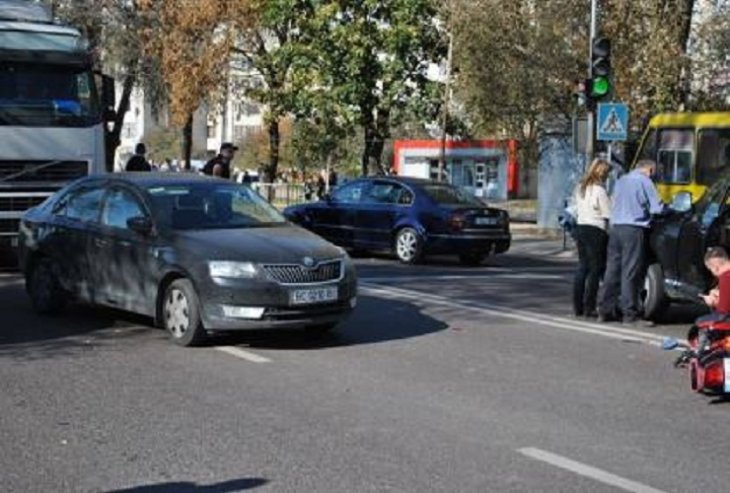 Сьогодні, 13-го жовтня, на вулиці Шевченка, 315 сталося зіткнення за участі автомобілів "Шкода", "Фолькваген", фури та мотоцикліста.