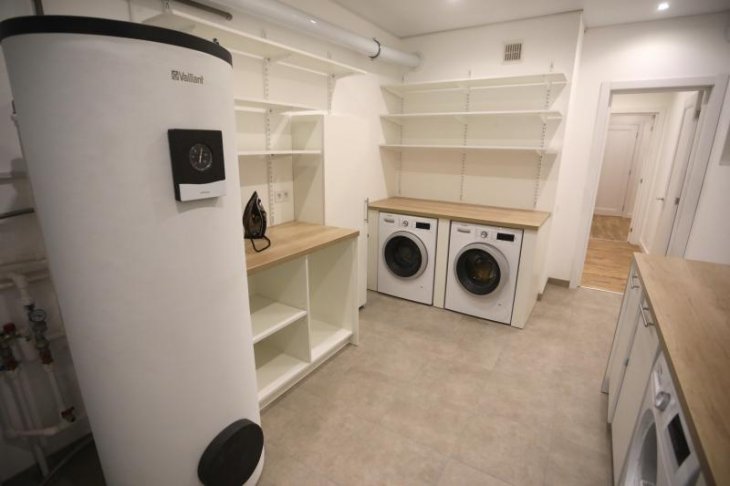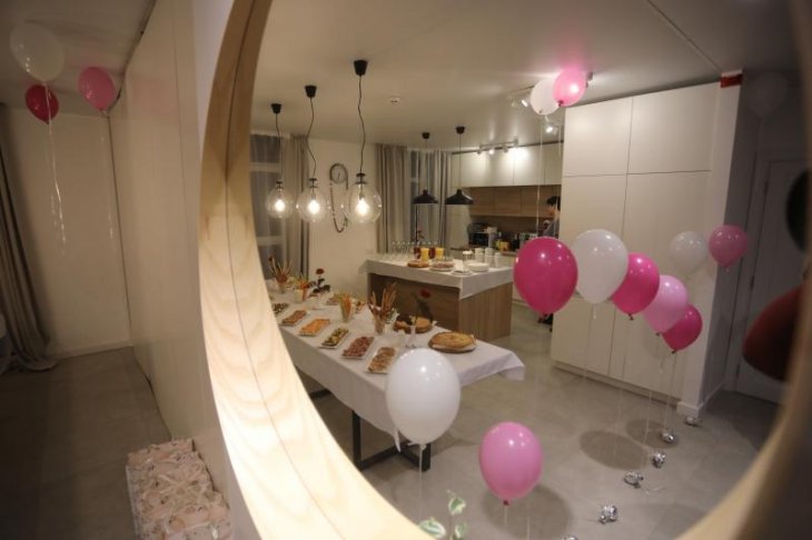 Загальна площа квартири — 328,2 кв. м, житлова — 144,3 кв. м. У квартирі є 7 спальних кімнат, 5 санвузлів, кухня-гостинна, клас для занять, спортивний зал, гардеробна кімната, дві комори, 8 балконів. Тобто усе потрібне для комфортного і затишного проживання дітей та матері-вихователя.