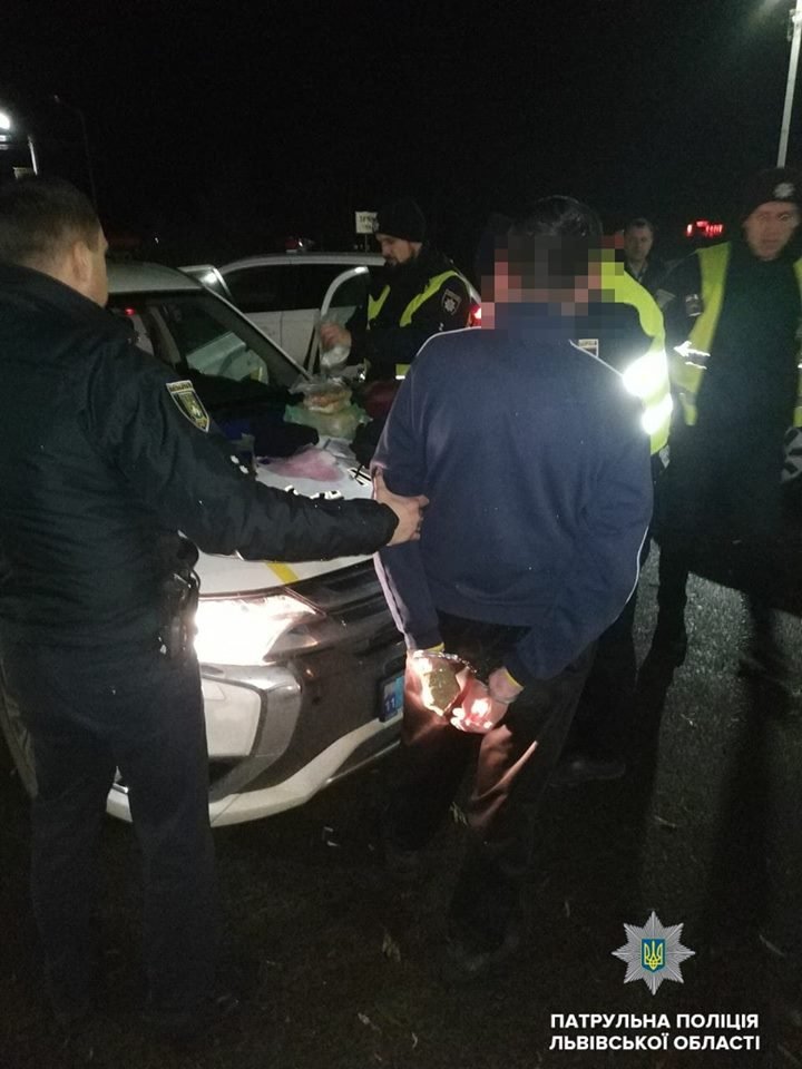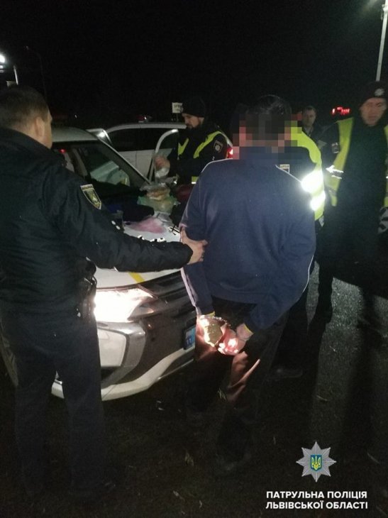 Під час поверхневої перевірки він дістав із кишені згорток із речовиною рослинного походження і затиснувши його у руці намагався приховати. На місце викликали слідчих Пустомитівського відділу поліції. Під час опрацювання місця події у чоловіка виявили металевий засіб для куріння та пресований пакунок із речовиною рослинного походження. Усе вилучили на експертизу.