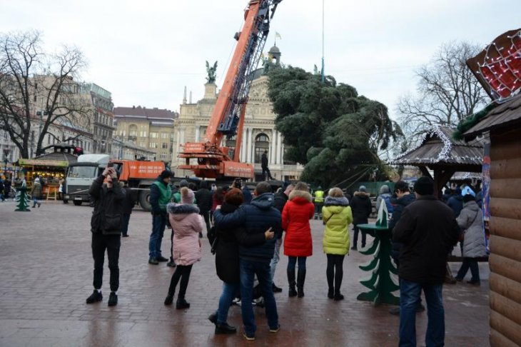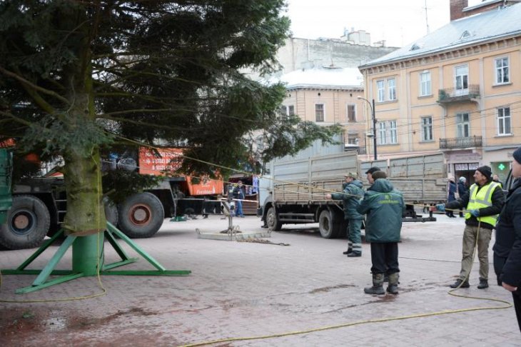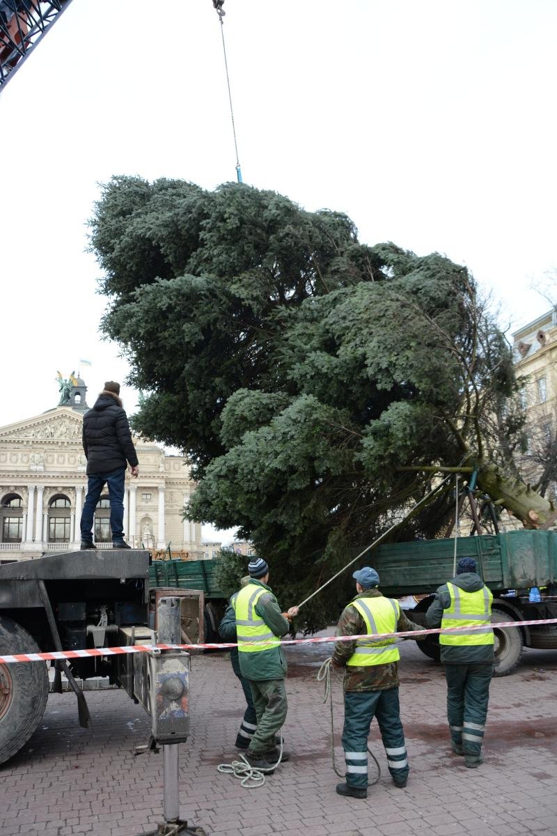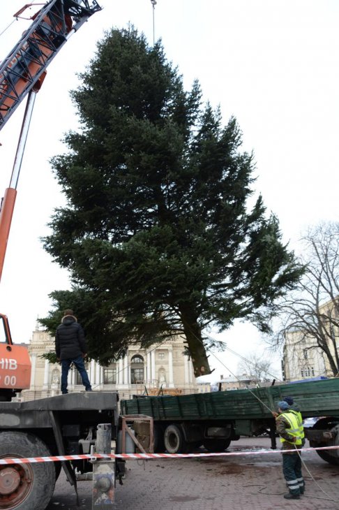 Сьогодні, 11 грудня, до Львова привезли головну ялинку міста. Традиційно новорічну красуню встановили на площі перед Львівським національним академічним театром опери та балету ім. С. Крушельницької.