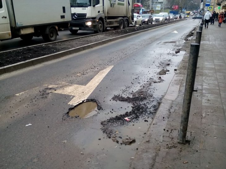 «Очікувалось, що це станеться навесні, проте перші ями утворилися ще до кінця року. Нагадаємо, реконструкція цієї ділянки відбулася в цьому році і завершилась лише 27.09.2018 р. Під час реконструкції не було заміни основи та нижніх шарів асфальту. Навіть залишки бруківки не витягли. Було покладено один шар асфальту поверх старої основи, з якої сфрезерували старий верхній шар. Доекономились, господарники?», – мовиться у повідомленні.