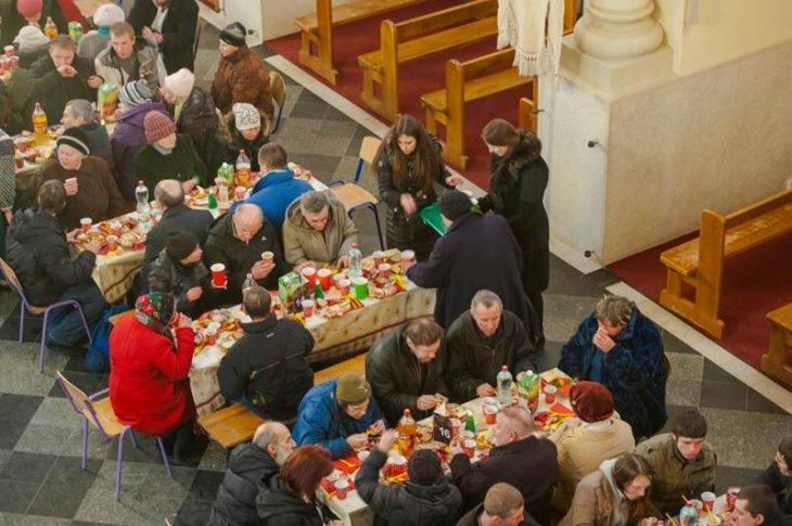 Минулоріч за святкові столи на Різдво Христове сіли 300 людей в потребі. Для них накривають святкові столи безпосередньо у самій Церкві перед вівтарем, де зазвичай відправляють святу Літургію.