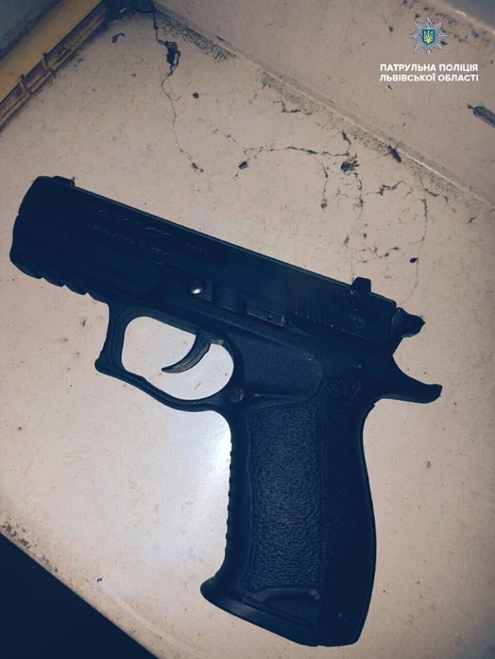 На місце викликали підкріплення та слідчо-оперативну групу. Предмет, схожий на пістолет, вилучили на експертизу. Осіб передали слідчим.