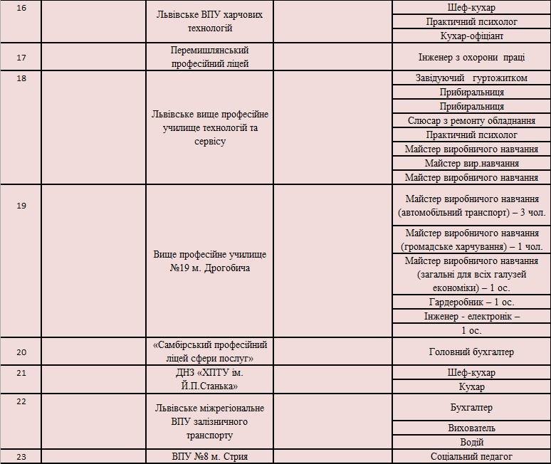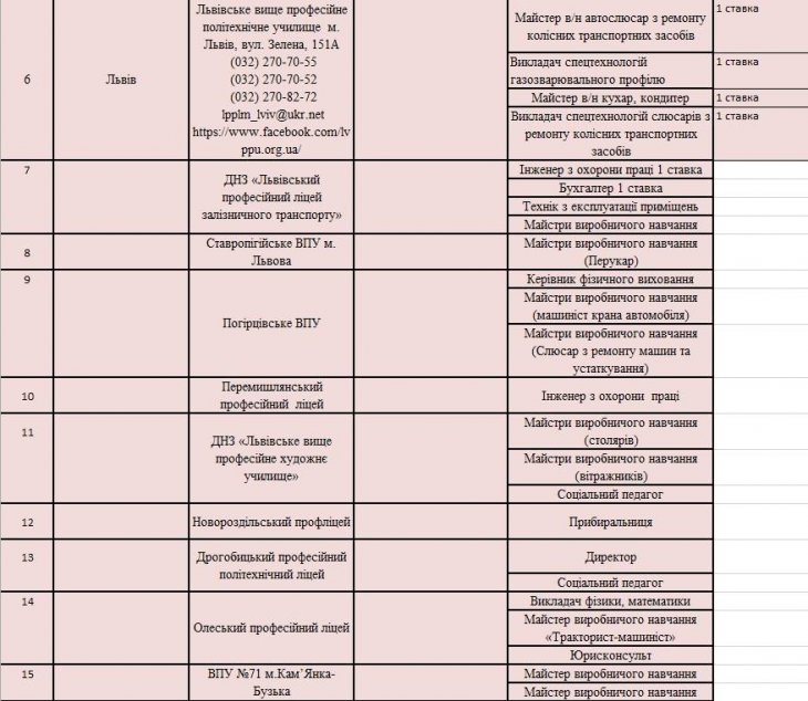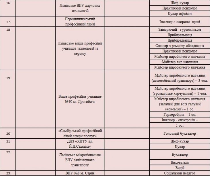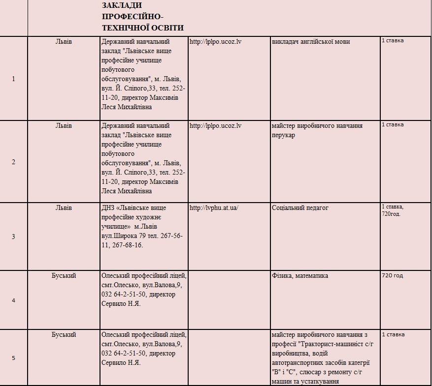 Станом на 1 січня в закладах освіти Львівщини актуальні такі вакансії: