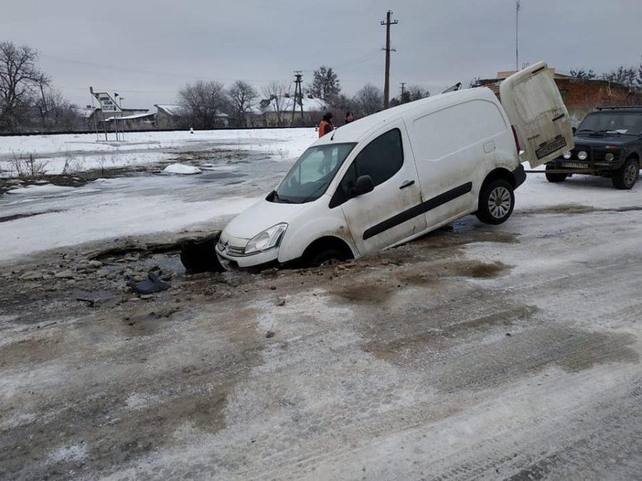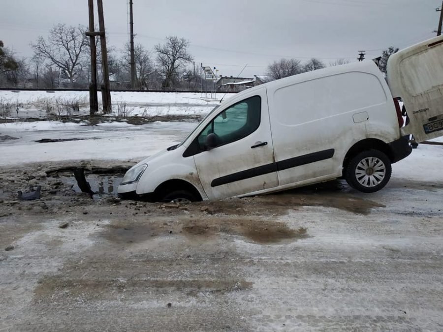 На Львівщині під автомобілем провалилася дорога (ФОТО)