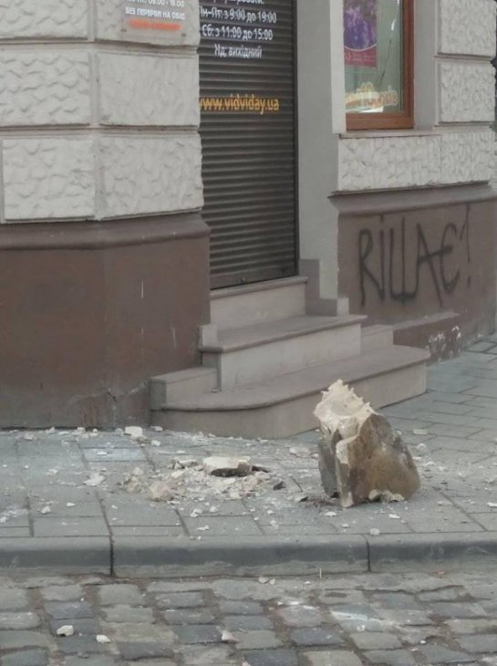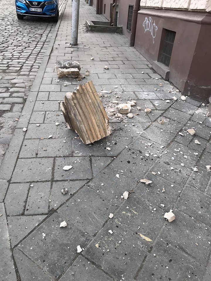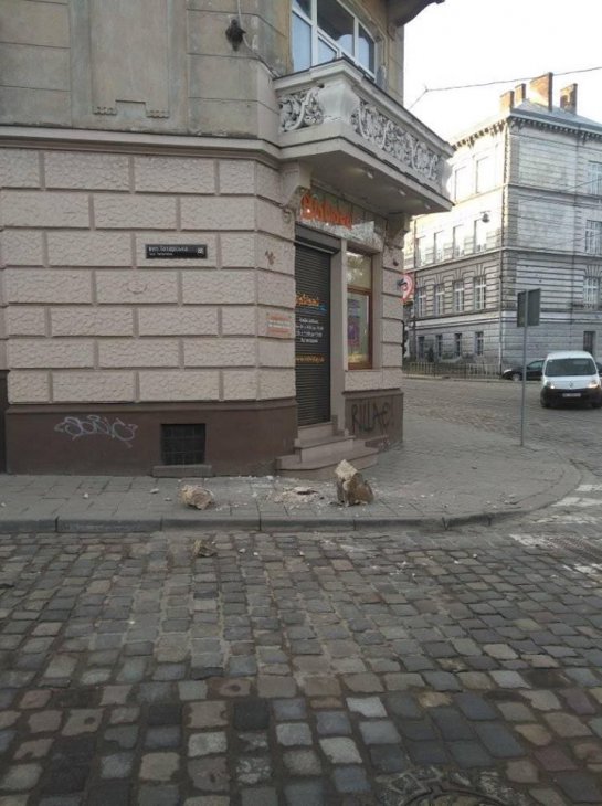 На вулиці Татарській у Львові частина балкону обвалилася на тротуар (ФОТО)