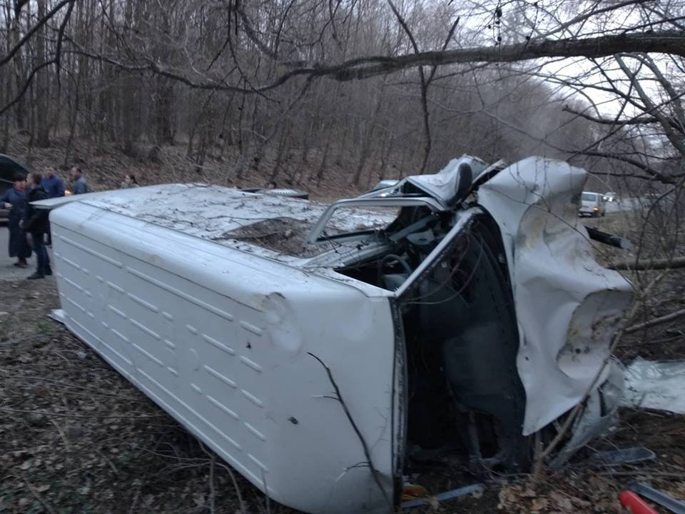 На Львівщині бус вилетів в кювет і перевернувся на бік. Водій – у лікарні.