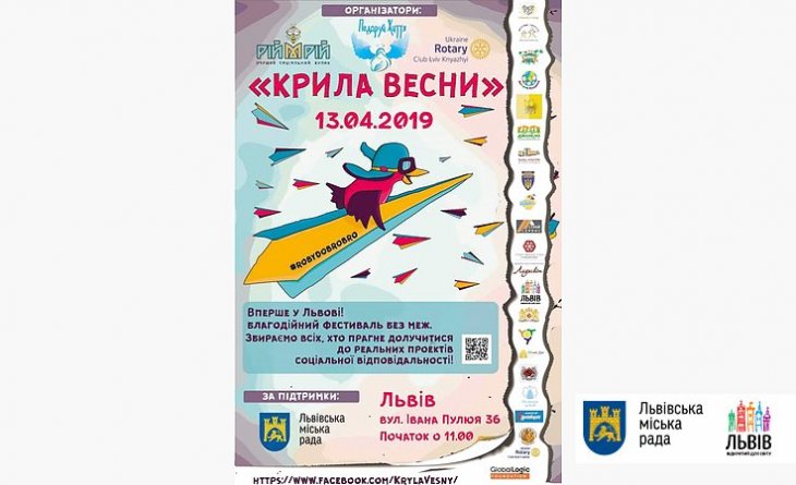 Завтра, 13 квітня, у Львові вперше відбудеться благодійний фестиваль «Крила весни».