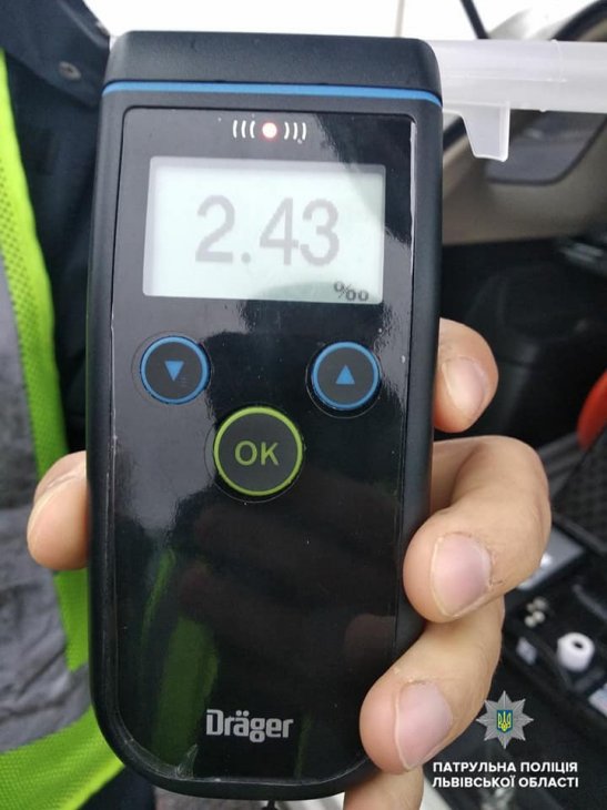 Чоловік перебував з чітко вираженими ознаками алкогольного сп’яніння. Пристрій драгер показав результат 2,43 проміле.