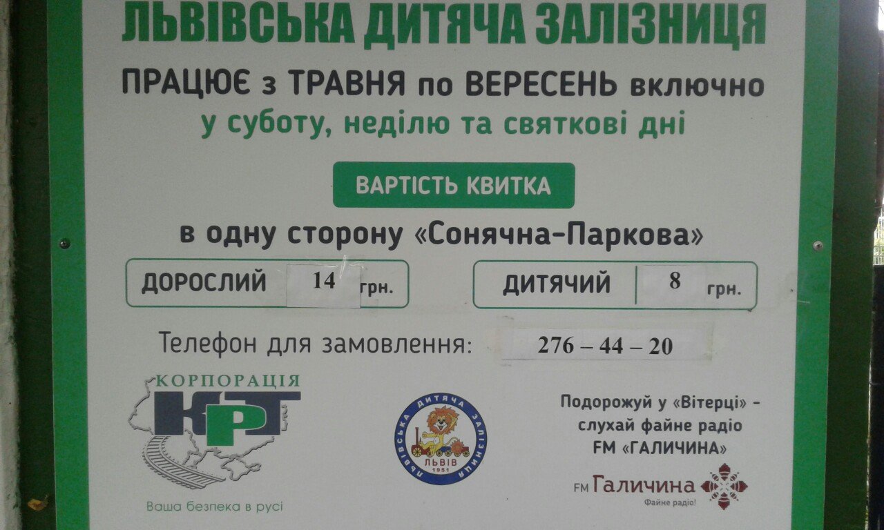 Вартість квитка для дорослого становить 14 грн, дитячий – 8 грн.