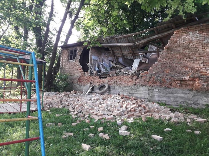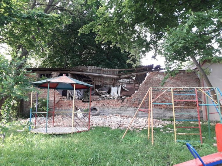 Сьгодні, 5 червня в дитячому садочку св.Миколая обвалилася стіна гаражу.
