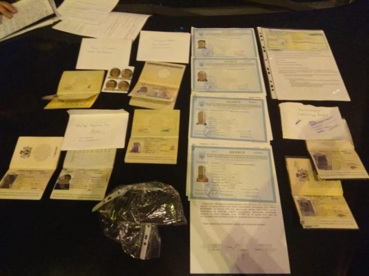 Під час санкціонованих слідчих дій співробітники СБУ виявили за місцями проживання фігурантів провадження іноземні внутрішні паспорти, паспорти для виїзду за кордон та водійські посвідчення, порожні бланки свідоцтв про народження, посвідки на тимчасове перебування в Україні, штампи, штемпелі та печатки.