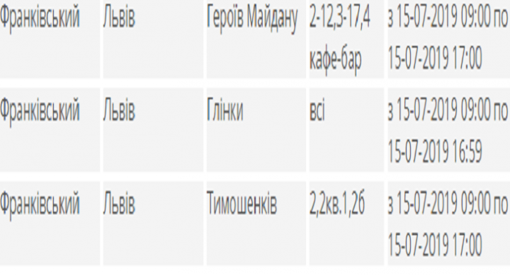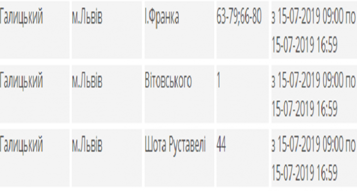 У звязку з плановими ремонтними роботами сьогодні, 15 липня, в частині Галицького та Франківського районів Львова призупинять подачу електроенергії.