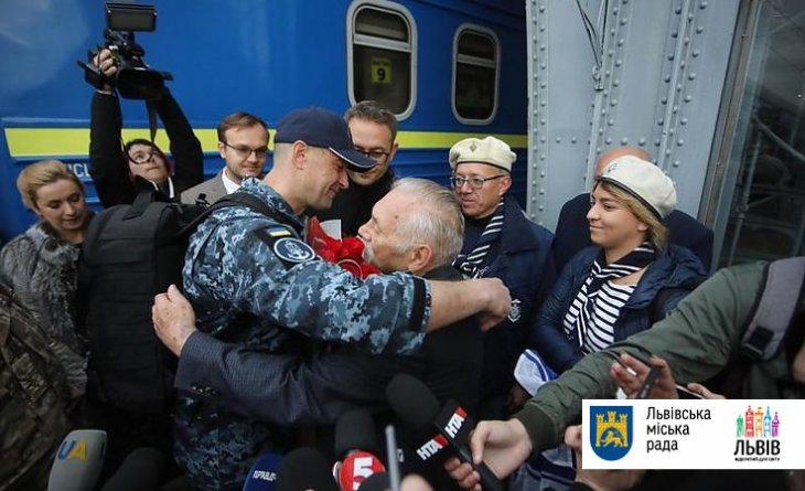 Сьогодні, 19 вересня на залізничному вокзалі міста Львова, люди зустрічали полоненого моряка Андрія Оприска.