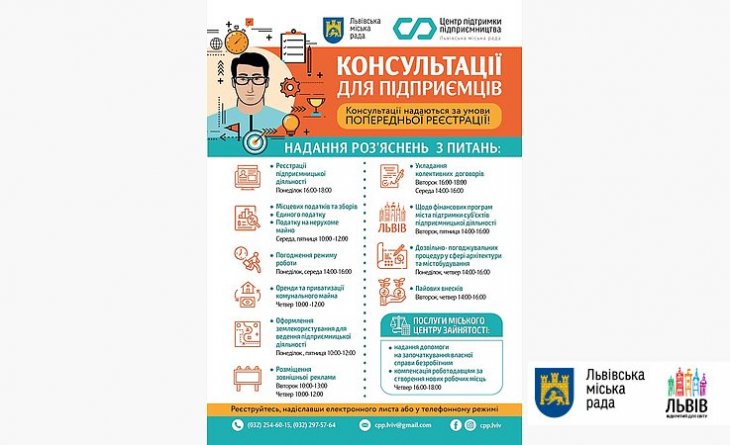 Львівська міська рада продовжує допомагати підприємницькій діяльності. Центр підтримки підприємців консультує усіх охочих, хто вже має власний бізнес, або ж хоче його започаткувати, повідомляє прес-служба міськради.
