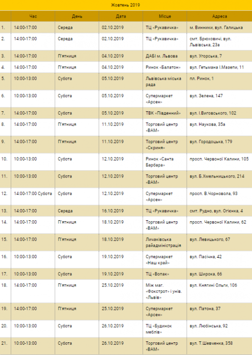 Графік стоянок екобуса на жовтень: