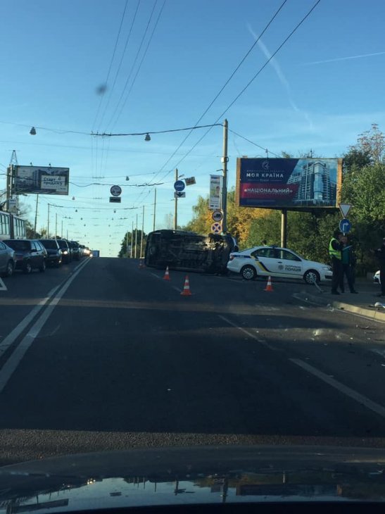 У результаті зіткнення автівка поліції перевернулась на бік, що призвело до ускладненого руху