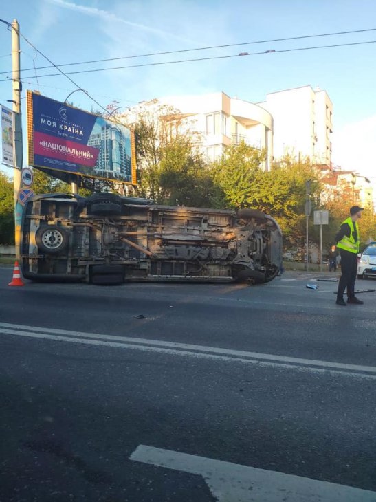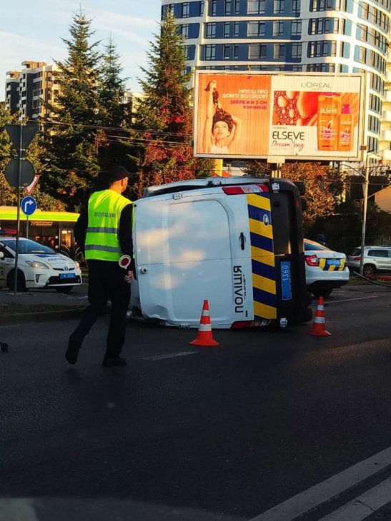 Пролетів на червоне: у Львові поліцейський автомобіль перевернувся на дорозі