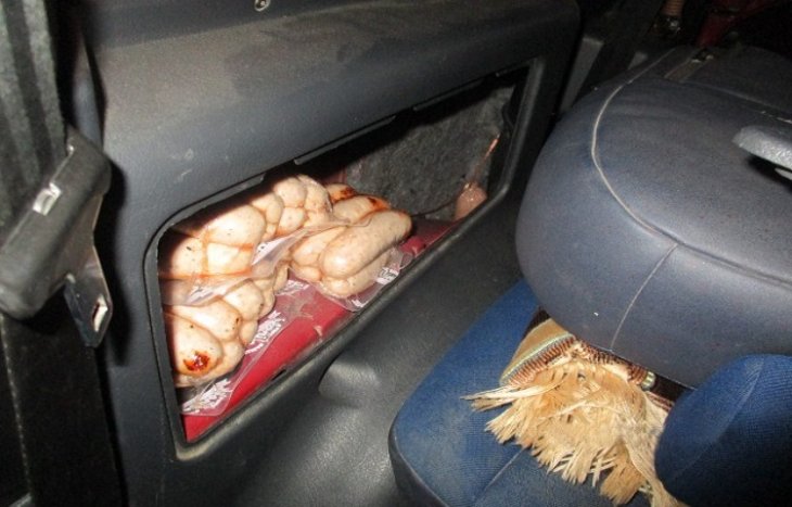 53-річний українець – житель прикордоння, повертаючись з Польщі, вирішив укомплектувати свій «Фіат» продуктами харчування. М’ясні та молочні вироби чоловік запхав під капот та під декоративну обшивку салону свого авто. Усього правоохоронці дістали з легковика понад 130 кілограмів продуктів. Товар і автівку вилучено.