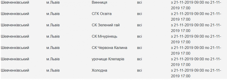 Де у Лвові сьогодні не буде світла