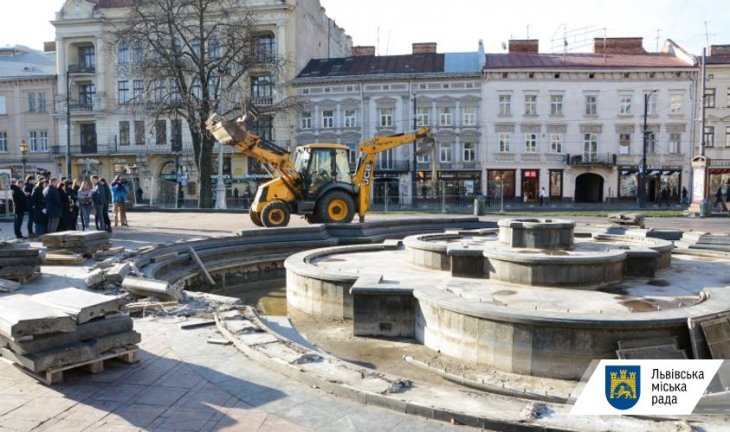 У Львові на площі перед Оперним театром проведуть ремонт площі та облаштують новий сухий фонтан. Вже розпочалися роботи з демонтажу старого фонтану. Демонтаж виконує підрядна організація на замовлення Галицької РА.