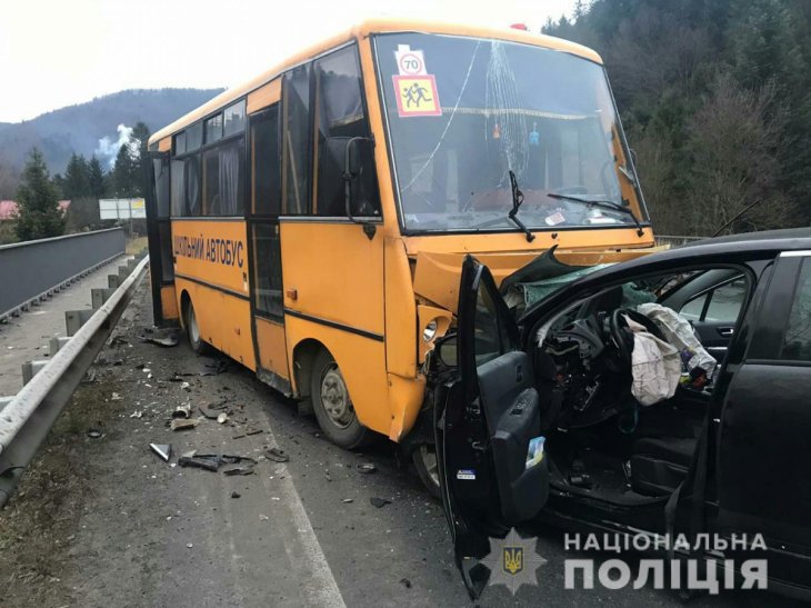 Як встановили поліцейські, сталося зіткнення автомобіля Peugeot 308, яким керував 28-річний львів’янин, зі шкільним автобусом ?ТАТА? під керуванням 46-річного жителя Сколівського району.