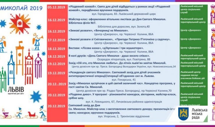 До Дня Святого Миколая місто організувало чимало заходів. Програма