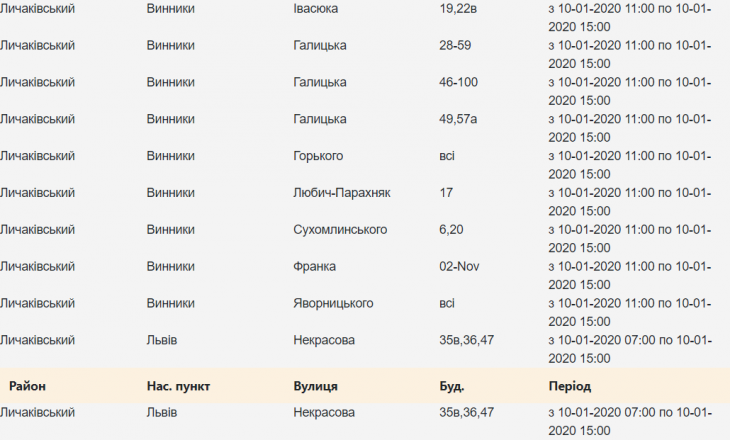 Де у Львові сьогодні не буде світла
