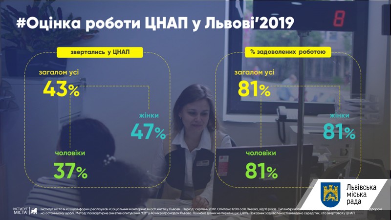 - при цьому, індекс задоволення обслуговуванням у ЦНАП становить 4,16 із 5 можливих. І це на 14% вище, ніж 2018 року (3,64)", — зазначили в КУ Інститут міста.