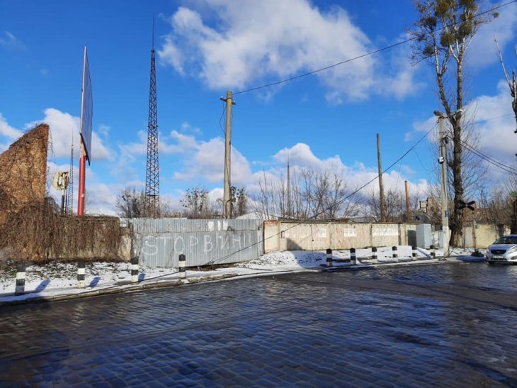 «На вул. Богдана Хмельницького, на переїзді, біля колишнього Ольвіту, впав бетонний стовб з лампою. Ще два стовпи похилилися. Стовп лежить на дорозі, а дроти на тротуарі», – написав він та опублікував фото.