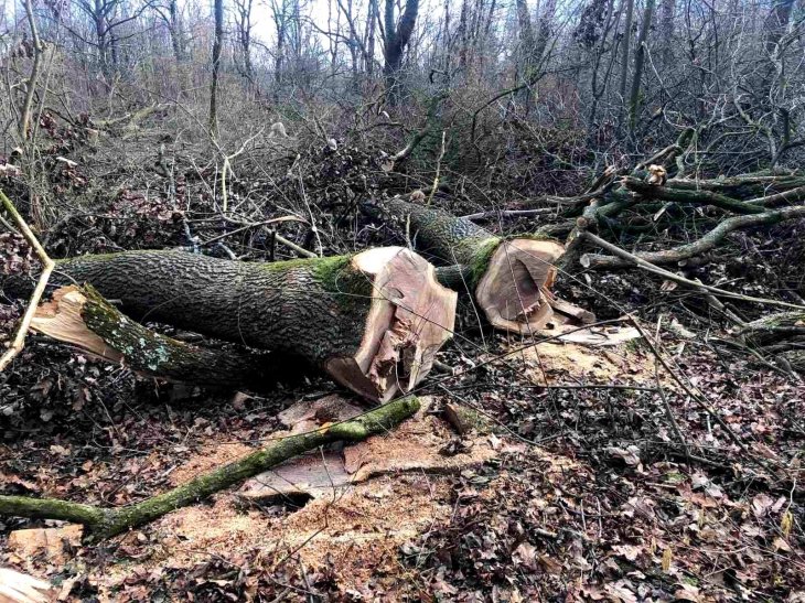 «Спеціалісти відділу державного екологічного нагляду (контролю) природо-заповідного фонду, лісів та рослинного світу Інспекції виявили на землях комунальної власності, що не відносяться до земель лісового фонду незаконну рубку 107 дерев породи дуб звичайний, віком 100 і більше років. На місці рубки знаходився колісний трактор марки Т 150 без номерних знаків, який ймовірно приймав участь у трелюванні зрубаних дерев, оскільки був обладнаний лебідкою з тросом», – йдеться в повідомленні.