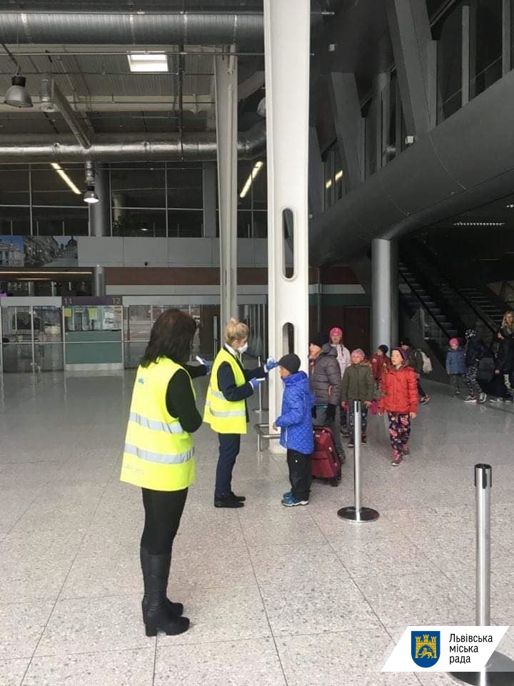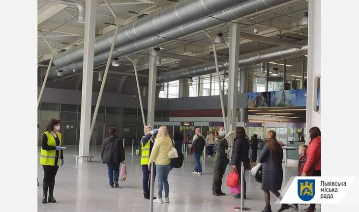 Кожному, хто прилітає до Львова, вимірюють температуру спеціальними інфрачервоними безконтактними термометрами. Процедура займає не більше 10?15 секунд. Усі служби працюють злагоджено і забезпечені захисними засобами: масками та рукавичками.
