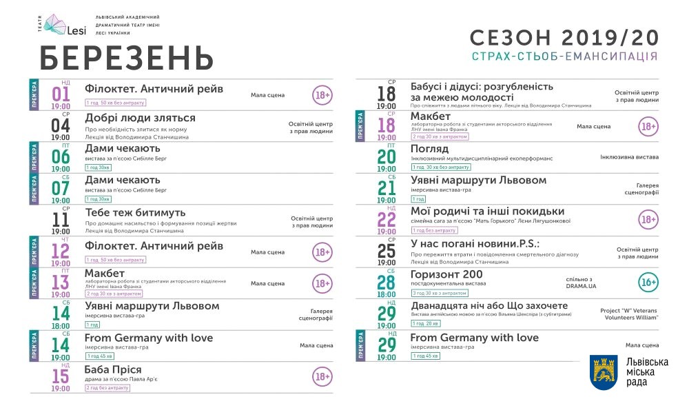 Львівський драматичний театр ім. Лесі Українки підготував для глядачів аж чотири прем’єри в березні.