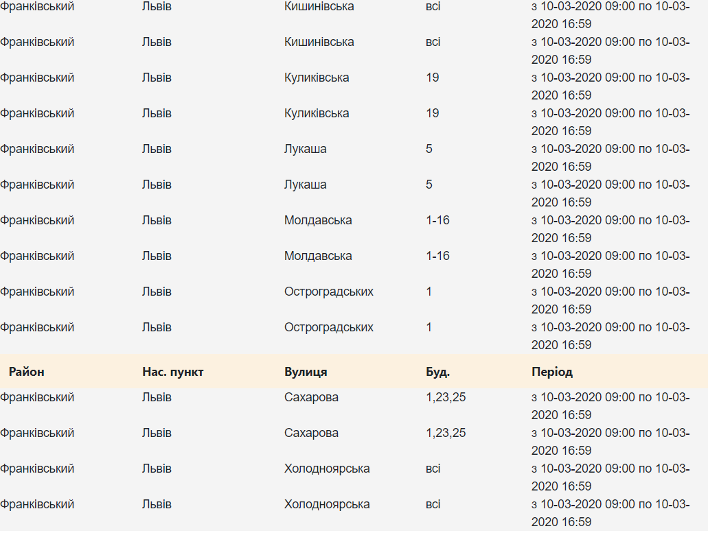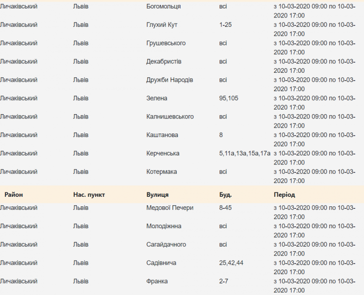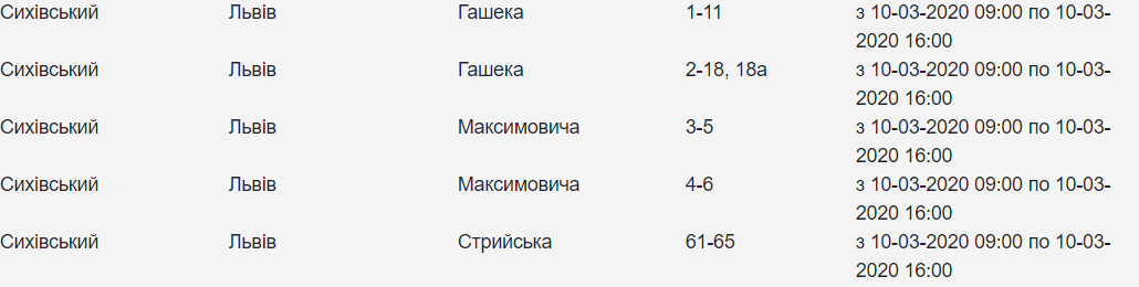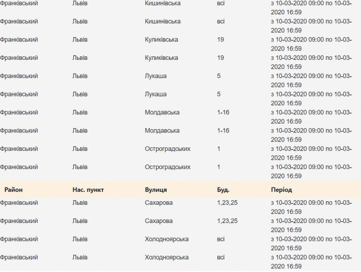 Де у Львові сьогодні не буде світла