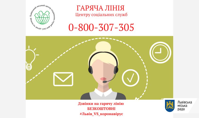 З п'ятниці, 20 березня, Львівський міський центр соціальних служб для сім’ї, дітей та молоді відкриває «гарячу лінію» та пункт збору для допомоги одиноким людям під час карантину. Пункт збору працюватиме виключно для прийому гуманітарної допомоги.