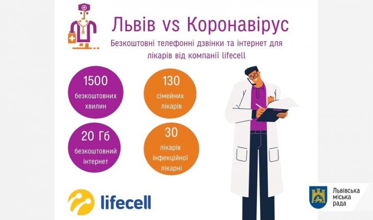«Компанія Lifecell виступила з ініціативою допомагати львівським лікарям та надавати їм безкоштовні послуги зв’язку. Зокрема, оператор вже забезпечує безкоштовним інтернетом та дзвінками 130 сімейних лікарів та 30 лікарів інфекційної лікарні», — зазначив заступник міського голови Львова з питань розвитку Андрій Москаленко.
