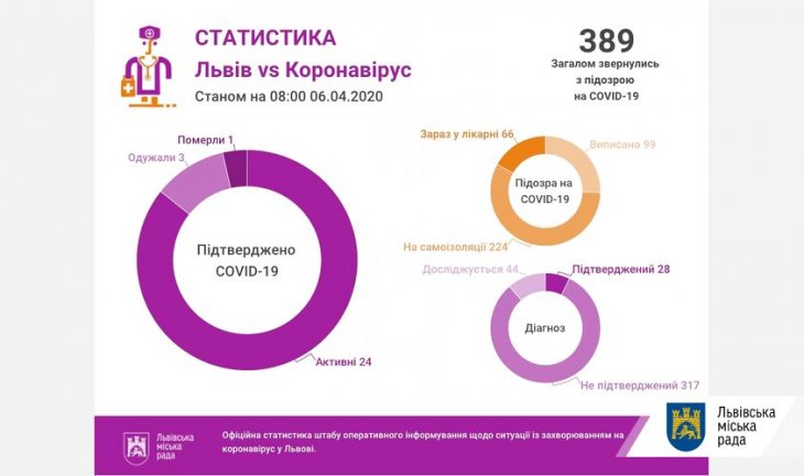 Станом на ранок у інфекційній лікарні перебуває 66 пацієнтів, 5 з яких — у реанімації. Загалом по місту і області є 28 людей з підтвердженим діагнозом, з яких троє уже вилікувались і одна людина померла. Про це під час ранкового ефіру на радіо «Львівська Хвиля» мер Львова Андрій Садовий. Водночас він закликав дотримуватись карантину, щоб убезпечити себе та рідних.