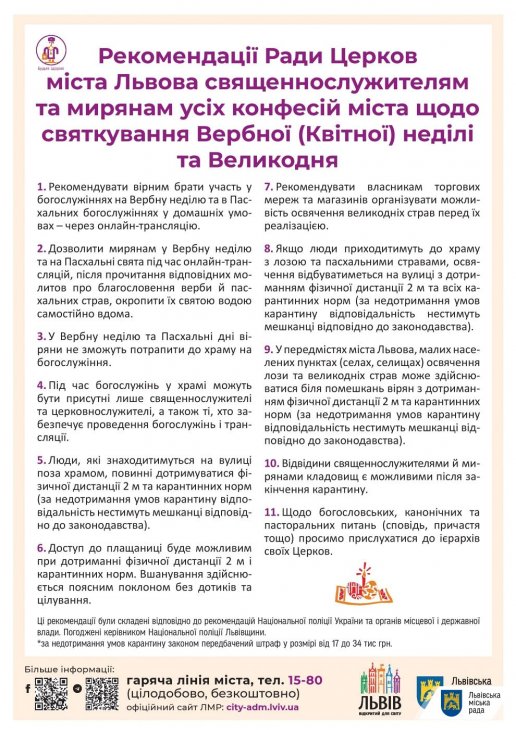 Рекомендації Ради Церков міста Львова священнослужителям та мирянам усіх конфесій міста щодо святкування Вербної (Квітної) неділі та Великодня: