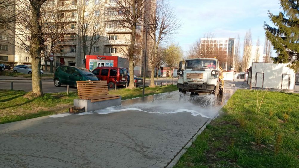 «Продовжуємо проводити прибирання міста за допомогою порохотягів. Також комунальні служби продовжують миття сходових кліток у будинках, проводимо миття і дезінфекцію хідників і вулиць.