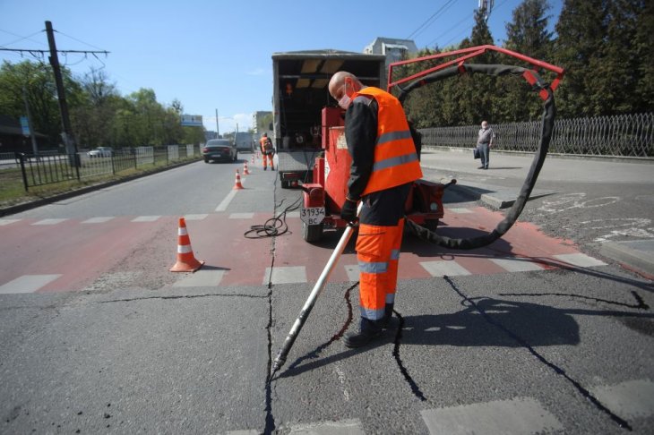 У Франківському районі Львова ліквідовують тріщини на дорогах (ФОТО)