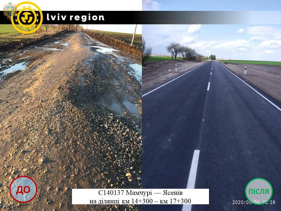 На Львівщині завершили ремонт дороги Мамчурі - Ясенів.