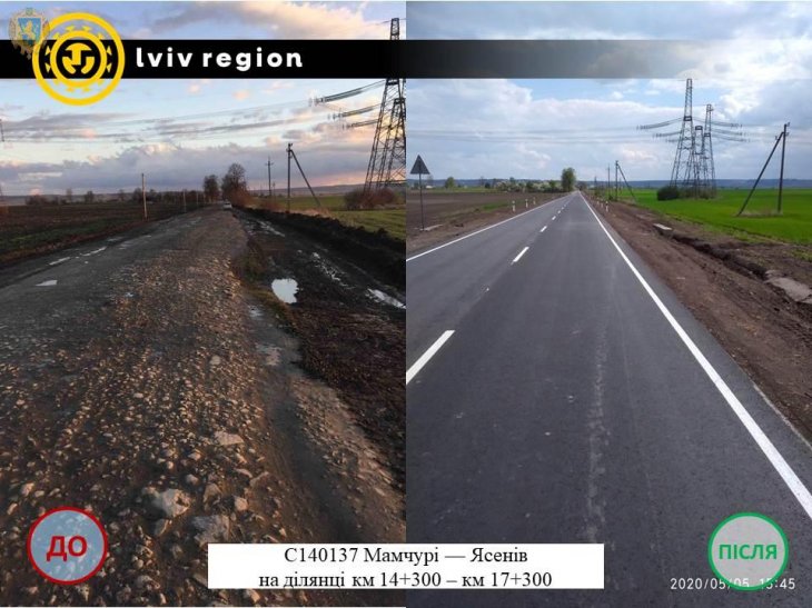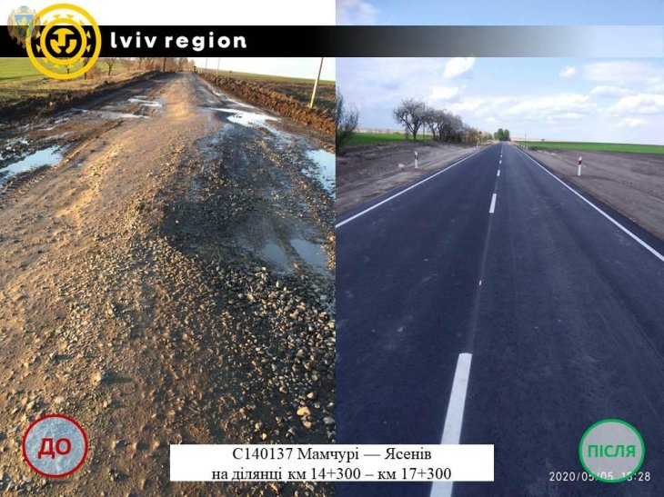 На Львівщині завершили ремонт дороги Мамчурі - Ясенів