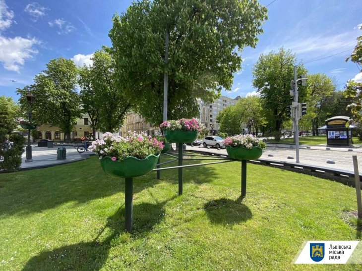 У всіх районах міста висаджують квіткові композиції. Зокрема, у Галицькому районі вже заквітчано годинник на пл. Митна, облаштовано клумби на пр. Свободи, пл. Ринок, біля храму св. Юра. А сьогодні облаштували композиції на пл. Міцкевича, та заквітчали ліхтарі на пр. Свободи.