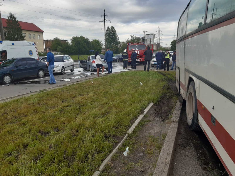 У Львові не розминулись автобус Neoplan і три легковики: є травмовані (ФОТО)