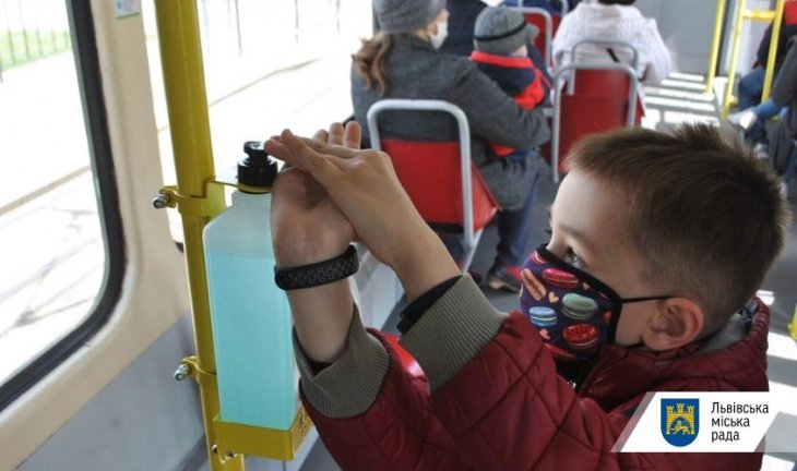 Відповідно до програми відновлення «Львів завтра», з 26 травня у всьому комунальному транспорті, електротранспорті та в автобусах, встановлено механічні дезінфектори для рук: приблизно 300 одиниць.