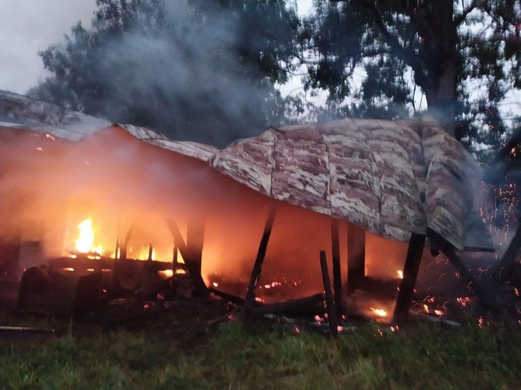 Вогнем знищено будівлю на площі 70 кв.м, пошкоджено дах дерев'яного гаражу на площі 5 кв.м та стіну на площі 10 кв.м.