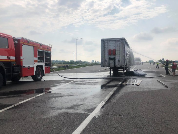 На дорозі Львів – Краковець загорівся причеп вантажівки (ФОТО)