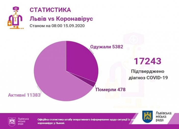 Як повідомила Галина Слічна, заступниця міського голови Львова та керівниця міського штабу з протидії коронавірусу, станом на 08.00 год у Львові та на Львівщині підтверджено 17243 випадки інфікування коронавірусом, з них 478 — летальні. За вчорашню добу лабораторні центри провели 2274 ПЛР-тести. Відтак, 186 — позитивні. Серед них львів`ян — 52.
