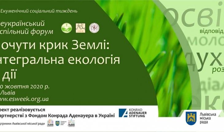 У Львові з 7 до 10 жовтня триватиме 13 Екуменічний соціальний тиждень, який ініціює та організовує Інститут екуменічних студій Українського католицького університету за підтримки партнерів. Це Форум, який щороку пропонує платформу для діалогу представників різних сфер і конфесій. Цьогорічна тема — «Почути крик землі: інтегральна екологія в дії». Усі заходи відбуватимуться онлайн.
