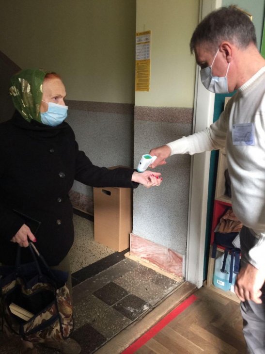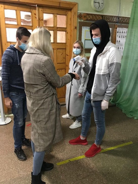 Члени ДВК №461254 (село Опільсько) попросили спостерігачів від партій проводити температурний скринінг для виборців.